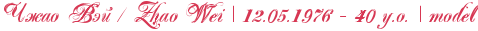 Чжао Вэй /Zhao Wei *12. мая 1976 - 40 лет *Она конечно может петь соло - Но работает Чжао охранницей, телохранителем, как угодно называйте - у самых вредных и чаще всего сбегающих актрис, моделей или певиц к каким назначают, и за кого больше всего переживает начальство той или иной компании. *Контакты VK у админа *нет Вполне себе взрослая, состоявшаяся женщина. Как и многие дети в Китае с раннего детства интересовалась боевыми искусствами, но подвинулась куда дальше чем другие. Получила много грамот и наград и даже выступала за национальную сборную. Пару раз светилась в кино на заднем плане или в качестве каскадерши. Со временем переквалифицировалась на телохранительницу для богатых девочек. Хотя бы потому что молодой всегда не будешь, а женщины охранницы с высоким уровнем подготовки с каждым годом становиться все более популярными благодаря современной моде. Сама Чжао Вэй довольно спокойная личность, и очень терпеливая, но если ее раздраконить она превращаться в такой сгусток негатива который может смести все, что мешает спокойствию. Почти не имеет вредных привычек, но изредка может выпить, в таком случае тоже становиться неконтролируема, но на этот раз сексуально. Имеет плохую привычку входить в словесный спор со стервами, потому иногда ее даже намеренно берут на работу, чтобы агрессивная звезда выплескивая свой негатив в спорах с телохранительницей, забывала искать приключения на заднюю точку. Любит петь, и надо сказать поет очень хорошо, всегда выступала соло на праздниках в академии боевых искусств, и в свободное время часто посещает караоке бары где собственно и употребляет алкоголь, в такие места ее таскать не стоит. Довольно романтическая натура и верит в героев сказок и легенд древности, читая книги про генералов и в особенности любит историю про Амазонок династии Сун. "в фильме :Легендарные амазонки 2011 - именно эта история." * Ориентация: лесби